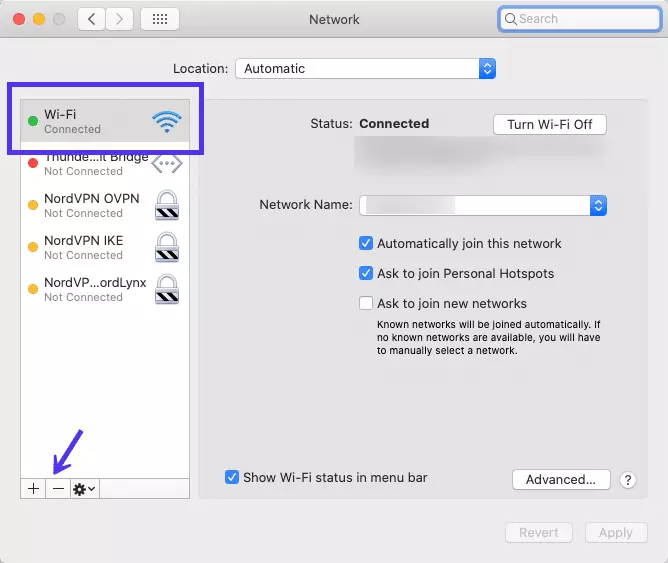 Để ngắt kết nối hoặc tắt một trong những cái đó, hãy chọn và nhấp vào dấu (-) ở cuối cửa sổ.