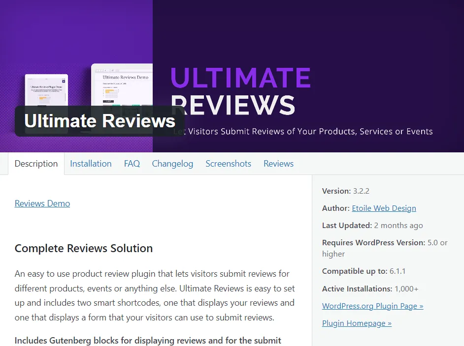 Giống như WP Review Pro, Ultimate Reviewer giúp bạn vừa hiển thị các đánh giá của riêng mình, vừa thu thập, hiển thị các đánh giá của người dùng. Nó cũng sẽ giúp bạn thêm schema markup để nhận được các snippet chi tiết đánh giá của Google.