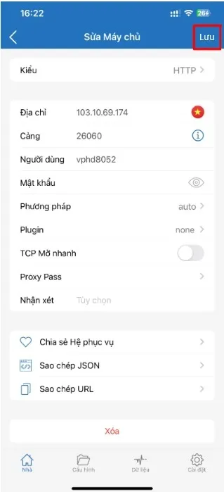 Bước 5: Bấm Lưu để lưu thông tin, sau đó tiếp tục bấm nút Kết nối để bật kết nối với máy chủ proxy mà bạn đã thêm.