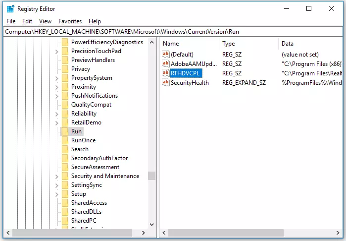 Kiểm tra RTHDCPL trong registry key