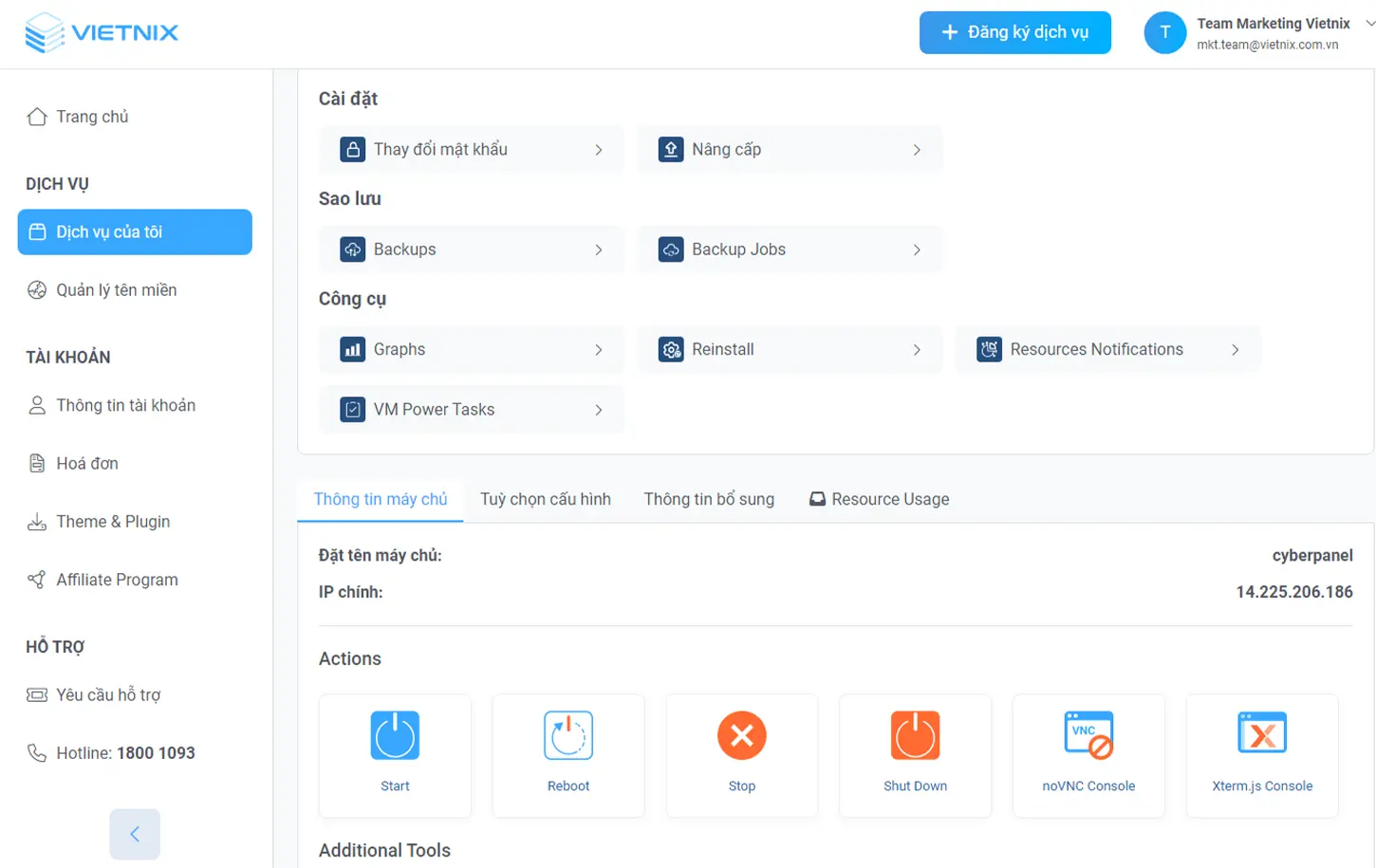 - Tùy chọn quản trị: Hỗ trợ các Control Panel phổ biến (cPanel, DirectAdmin, aaPanel, Cyberpanel…) hoặc quyền quản trị root/administrator đầy đủ.
