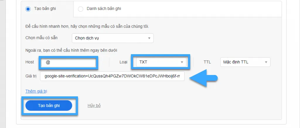 Bước 3: Thêm bản ghi TXT vào cài đặt DNS của tên miền